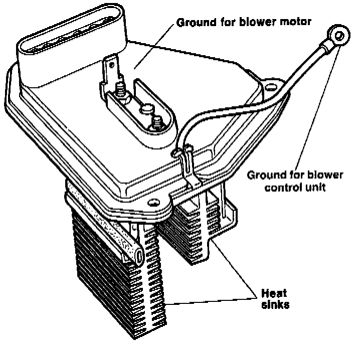 The blower control unit is mounted in the evaporator assembly. It controls the speed of the blower by regulating the ground of the blower motor. The signal to operate the blower control comes from the programmer.