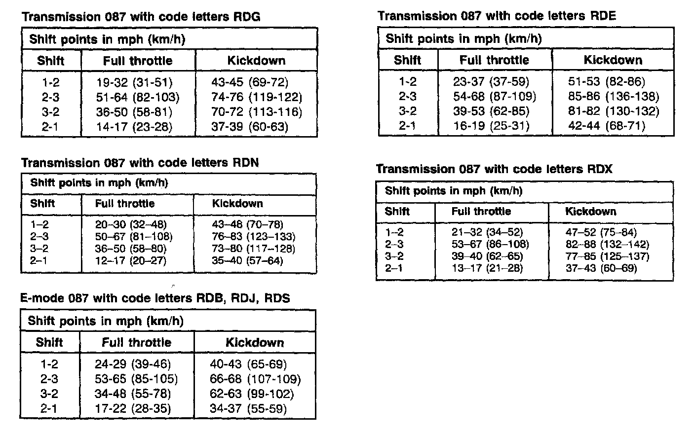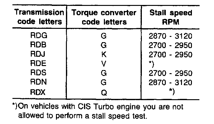 A/T Type 087 & 087 E-mode, Torque Converter Stall Speed: