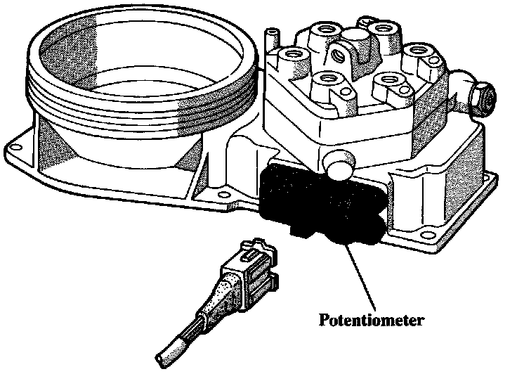 The air sensor potentiometer is connected to the air sensor lever. It generates a voltage signal based on the position of the air sensor plate. This signal is used by the fuel injection control unit to determine cold acceleration enrichment.