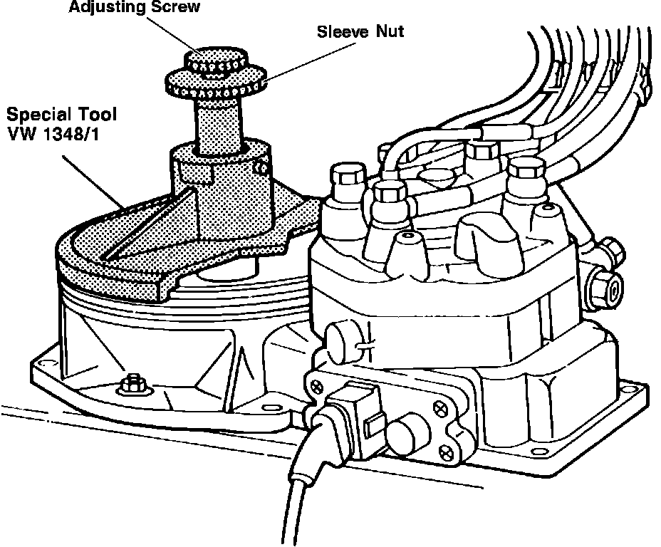 3. Lift the sensor plate up so that it is even with the bottom edge of the venturi cone (use special tool VW 1348/1, Fig. 10, or some other fixture that will allow the sensor plate to remain stationary while performing adjustment).