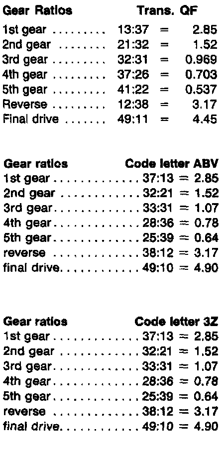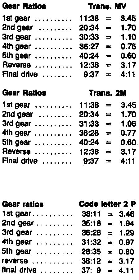 Manual Transmission 5-spd 093, Gear Ratios: