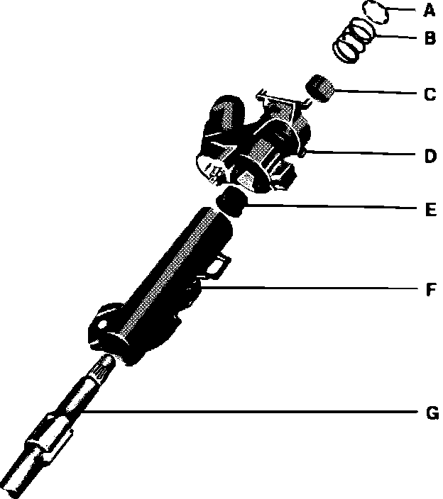 11. Push new steering lock and ignition switch assembly ``D'', Fig. 2, onto steering column tube to stop and install retaining bolt.