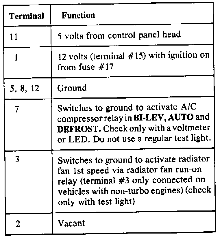 Terminals 4, 6, 9 and 10 form a multiplex electrical information connection with the control panel head. The programmer receives its operating information (commands) in the form of square electrical waves from the control panel head. These signals cannot be measured accurately with normal shop equipment. If a problem is suspected with the programmer: