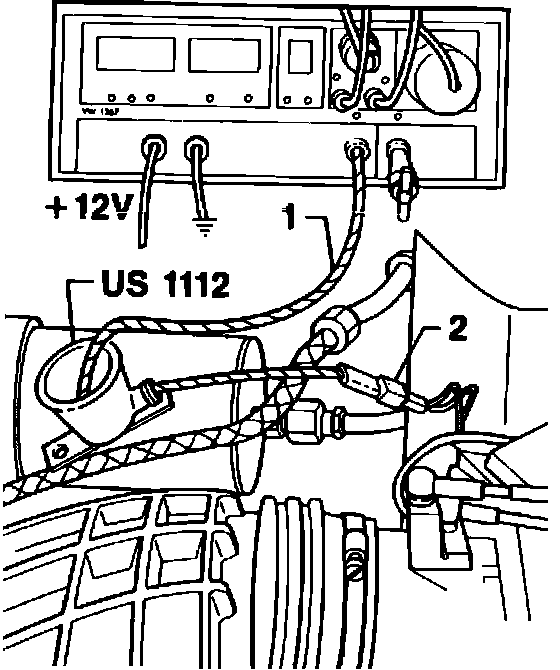 1. Connect test adapter US 1112 to test connector, then connect test leads from multimeter to adapter. Depress % button on multimeter, start engine and let idle.