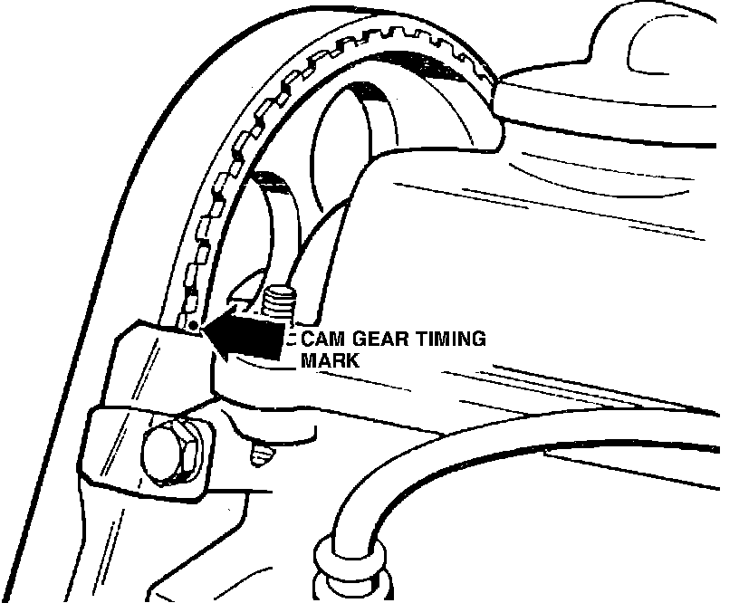 4. Check that camshaft and crankshaft timing marks are still properly lined up. If not, turn engine by hand until they are.