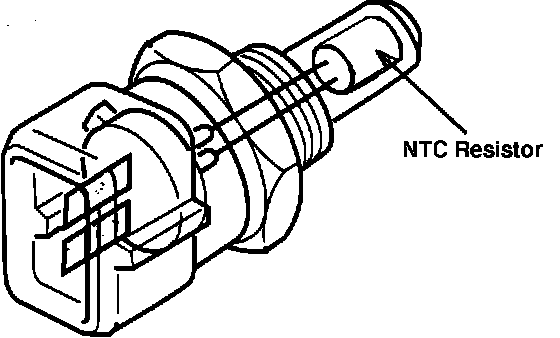 The coolant temperature sensor, located on the rear of the cylinder head, is an electrical thermistor with negative temperature coefficient. Negative temperature coefficient means that the change in resistance is inversely proportional to the change in temperature (as temperature increases, resistance decreases). The ECU measures the resistance through the sensor and calculates the engine temperature. The ECU uses this information to adjust the air/fuel ratio and ignition timing to meet the specific demands of the engine, at that temperature. The ECU also enables certain other functions only when the engine coolant temperature is above a certain value, such as knock sensor control (for ignition timing), oxygen sensor feedback (closed loop operation), deceleration fuel cut-off, and EGR control.