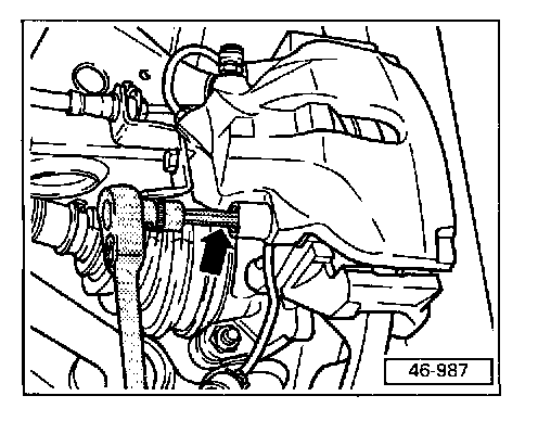 Secure the brake caliper with a piece of wire in order to relieve the stress on the brake hose.