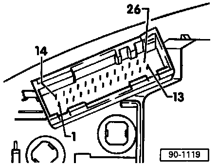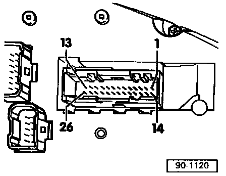 26-point connector, green, on instrument cluster- Always use appropriate wiring diagram