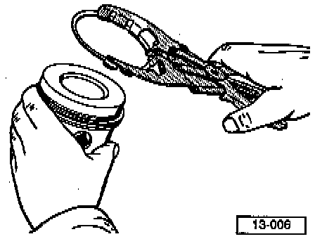 - Remove and install piston rings using ring expander as shown.