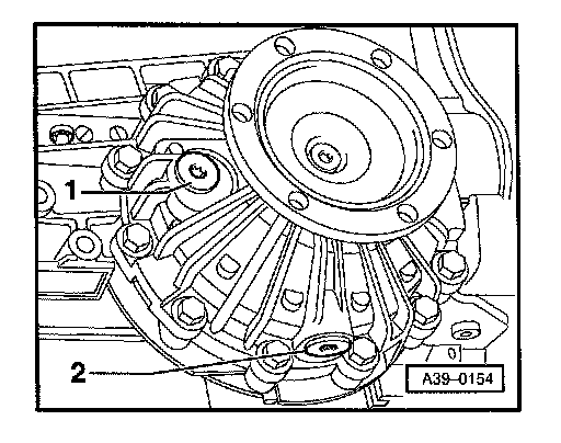 Remove oil drain plug (arrow -2-) and drain gear oil.