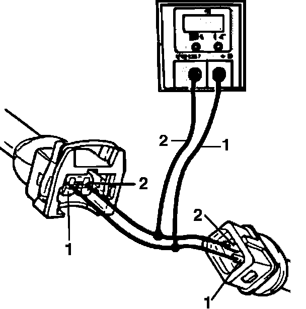 4. Using a test harness that allows the temperature sensor to remain connected while testing (VAG 1594 or equivalent) connect multimeter to the connectors as shown, use wires long enough to allow multimeter to be placed on the passenger seat.