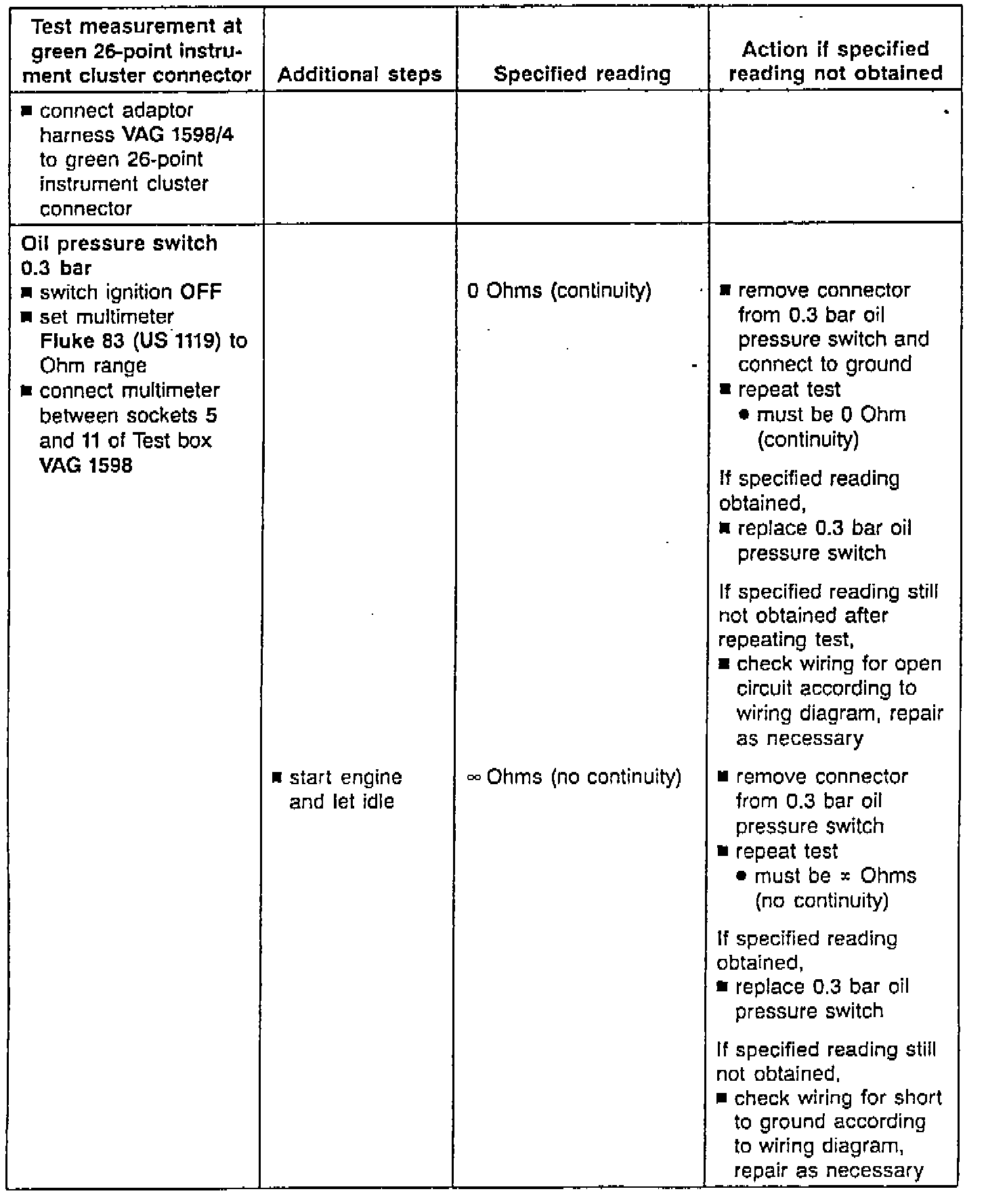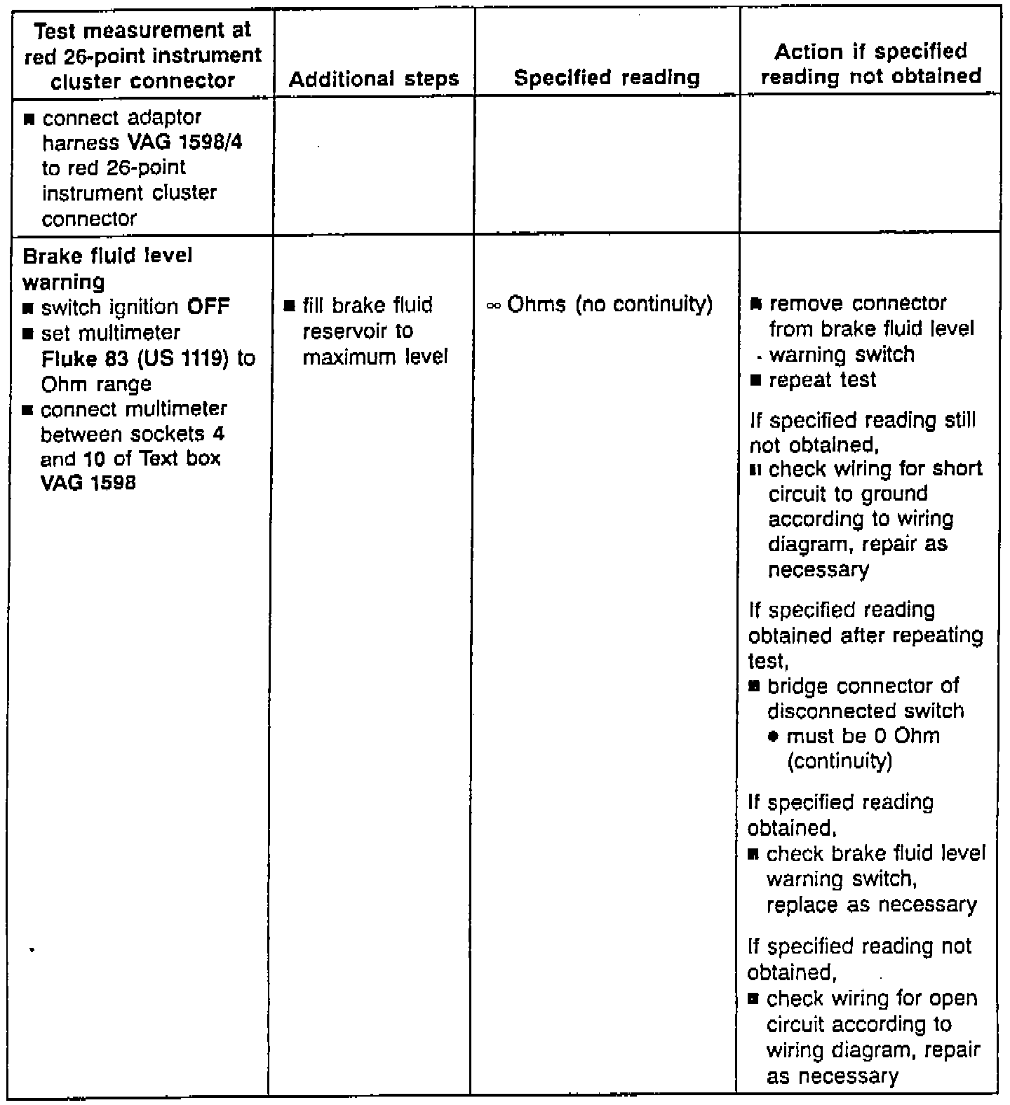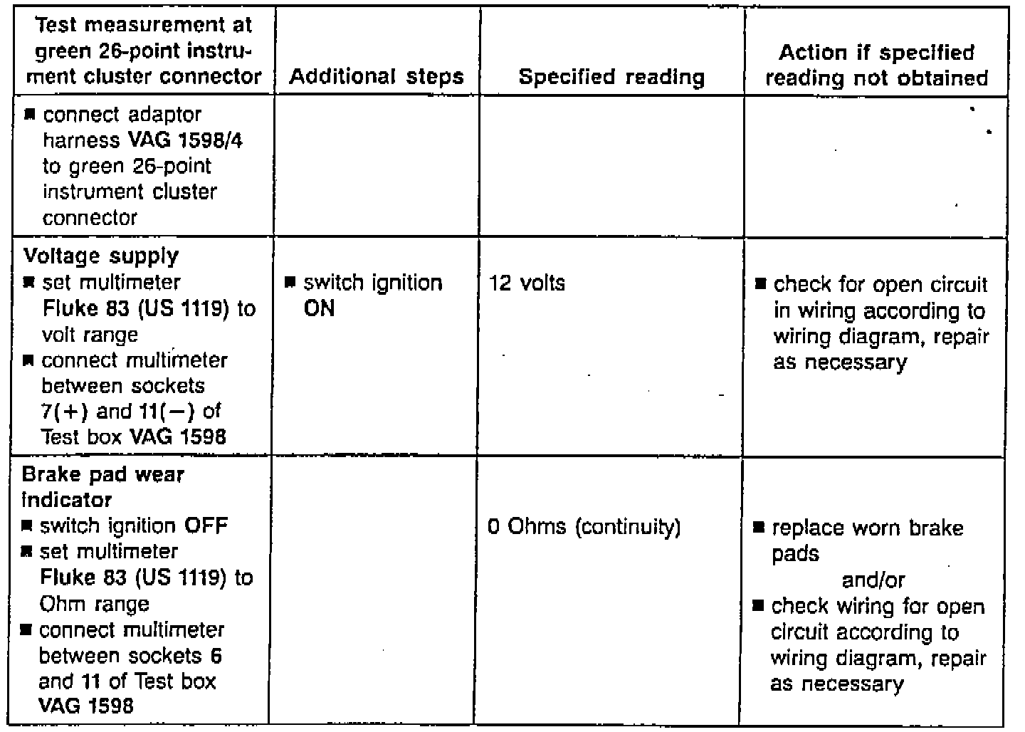 ^ use digital multimeter Fluke 83 (US 1119), connector test kit VW 1594, Test box VAG 1598, adaptor harness VAG 1598/4 and test adaptor VAG 1594/20 when performing electrical checks