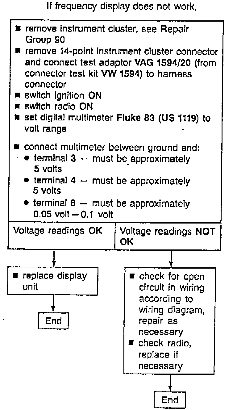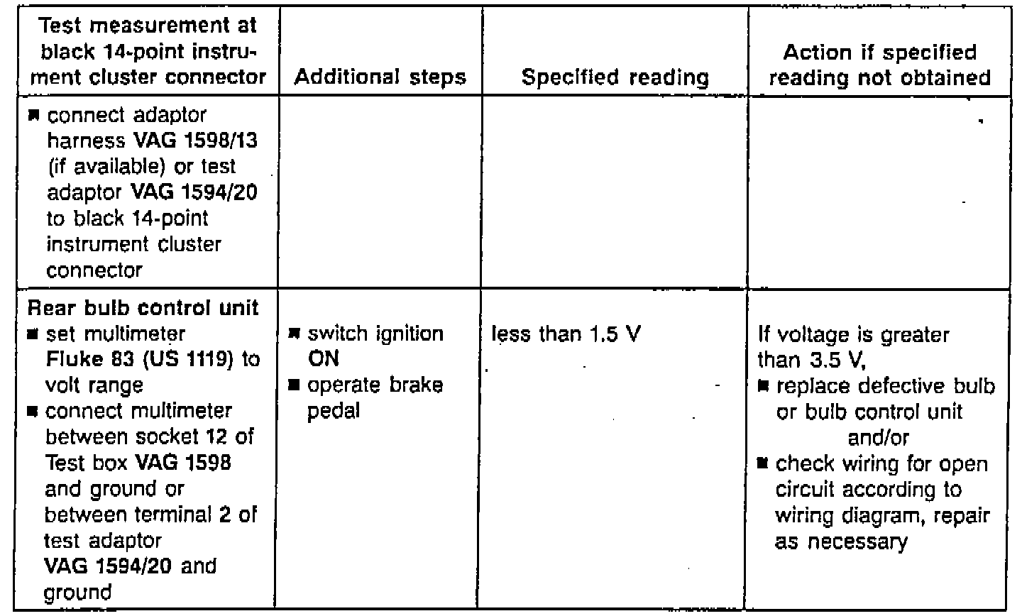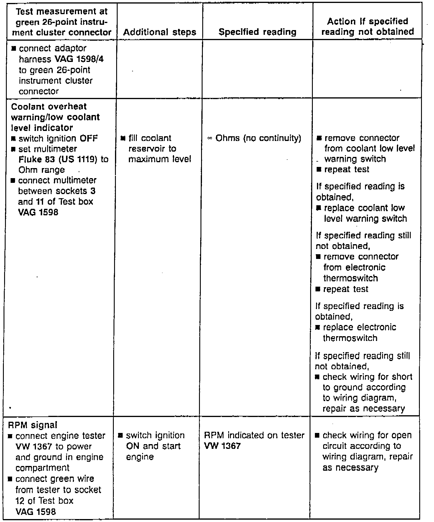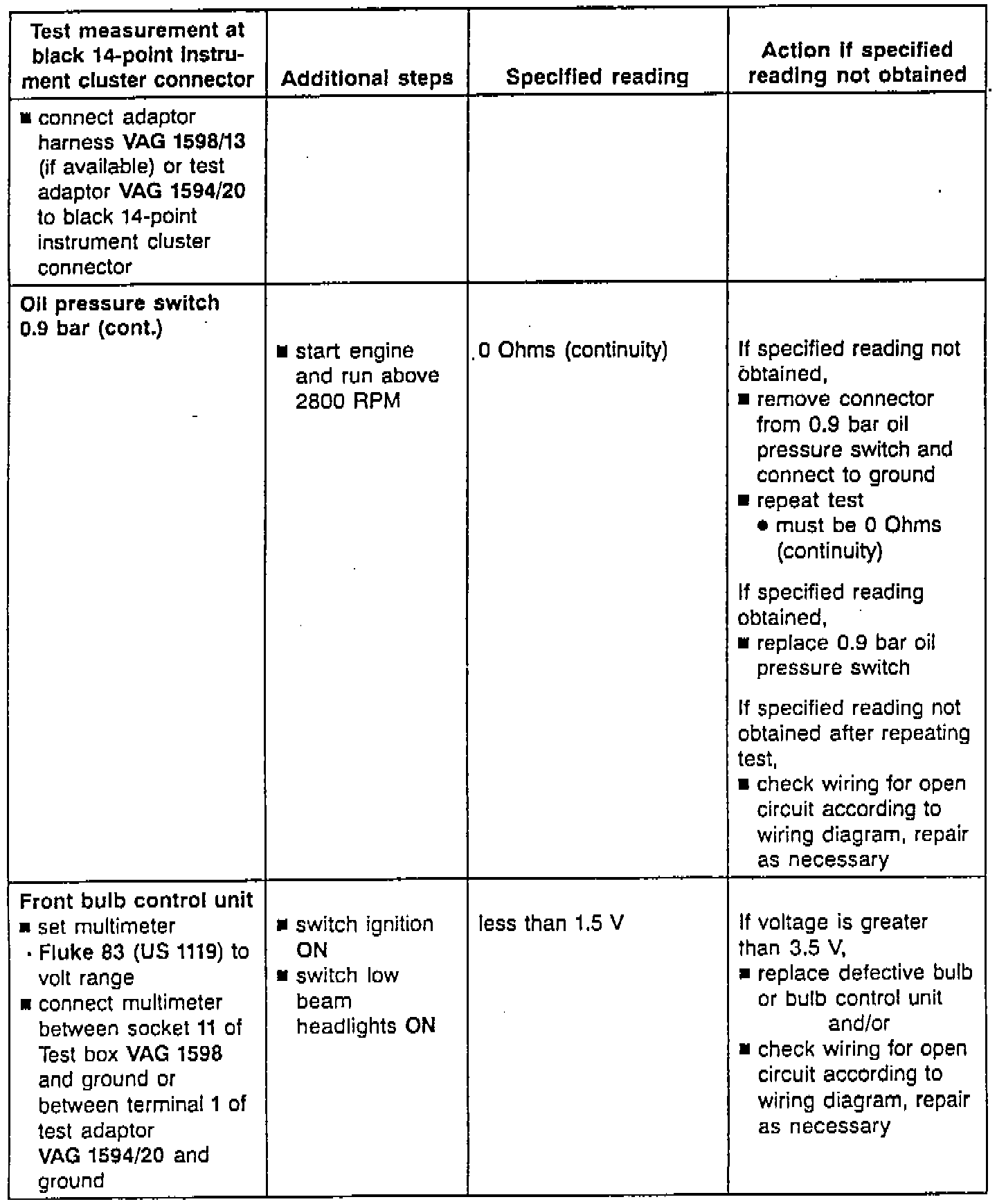 ^ use digital multimeter Fluke 83 (US 1119), connector test kit VW 1594, Test box VAG 1598, adaptor harness VAG 1598/4 and test adaptor VAG 1594/20 when performing electrical checks