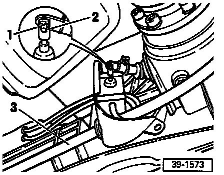 - Pull parking brake cable -3- with rubber grommet out of holding bracket.