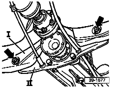 - Separate crossmember -I- from crossmember -II- (arrows).