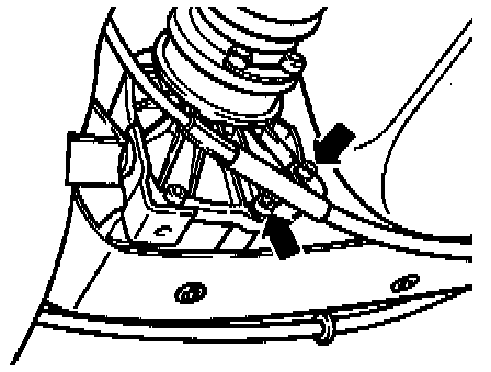 - Disconnect right parking brake cable bracket from final drive (arrows).