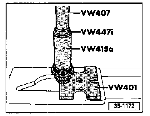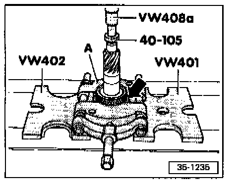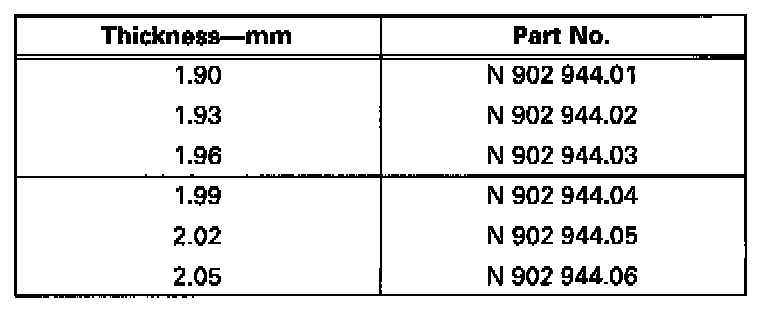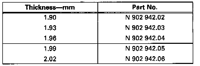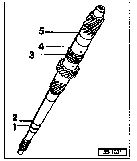 - Thickness of circlips -1-, -2-, -4- and -5- must be determined. Circlip -3- is always the same thickness.