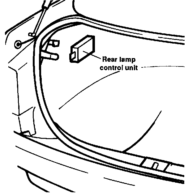 Rear lamp control unit is in the trunk (left side)