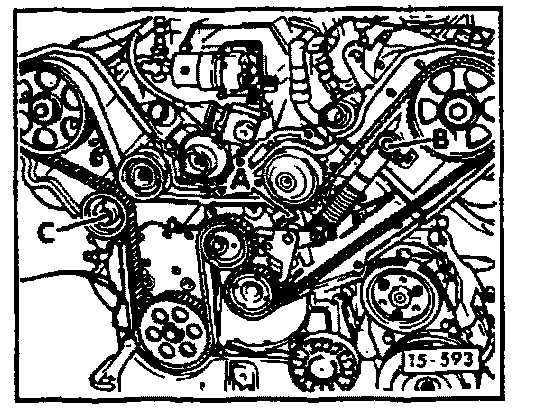 Toothed belt, installingNote: Before installing a new belt, the rollers and tensioners must be checked for dirt, rough running and ease of rotation. Clean or replace rollers and tensioners as necessary.