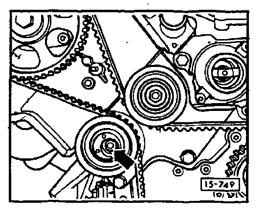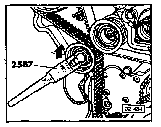 - perform basic setting of toothed belt tensioner by turning idler pulley eccentric in clockwise direction using tool US 4493