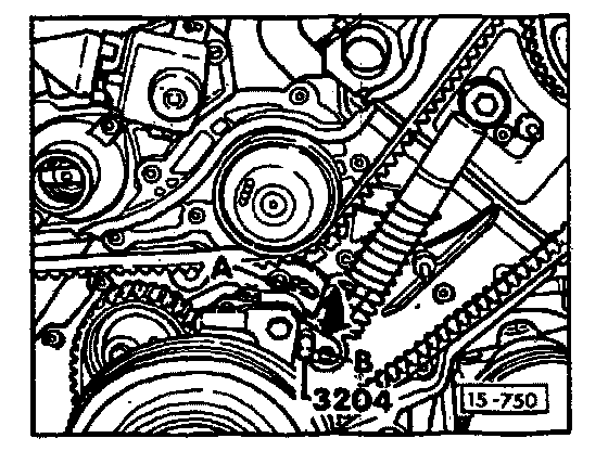Note: If there is NO hole in the vibration damper to accept special tool VAG 3211 you MUST manually ensure that the TDC mark on the vibration damper is aligned with the TDC pointer BEFORE AND AFTER tightening the camshaft sprockets.