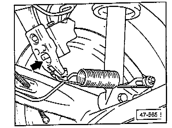 On vehicles with a height-sensitive brake pressure regulator, press the regulator lever (arrow) firmly towards the rear axle when bleeding the rear brakes.