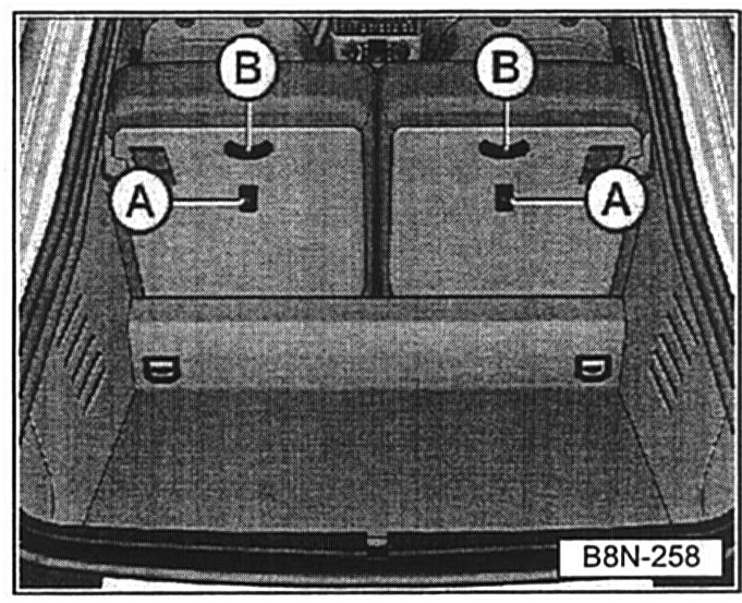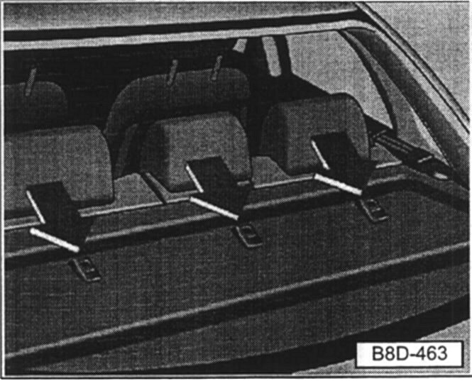 - Illustration shows seat back with tether anchor arrangement for Avant and Allroad Quattro