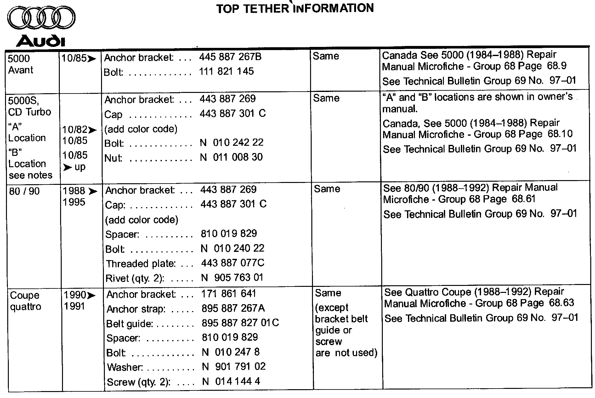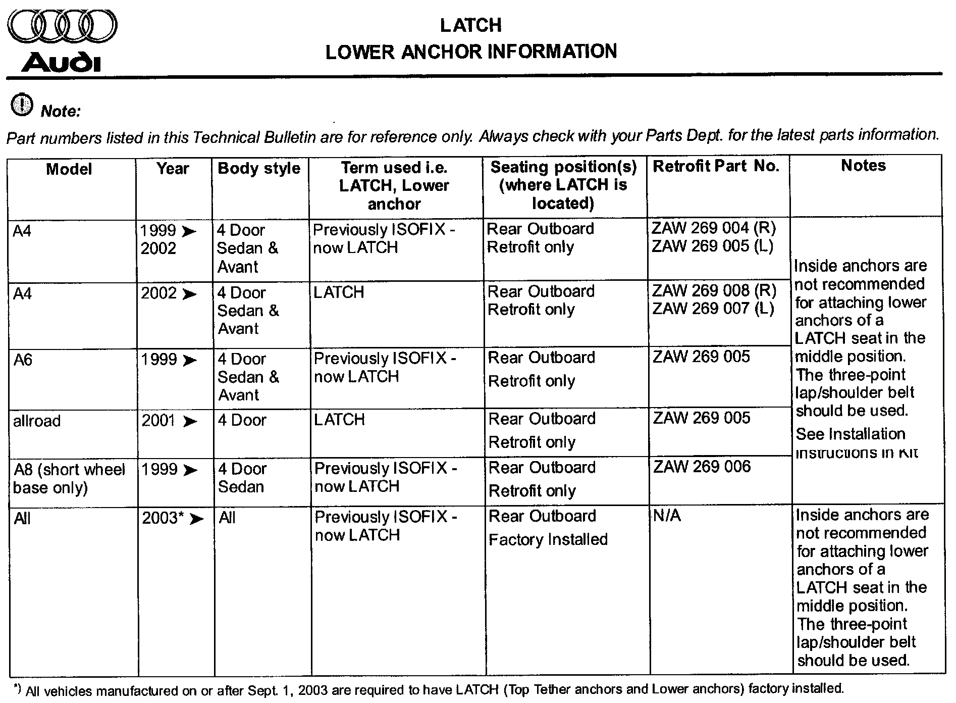 Some A4 Avant models may require a seat back change for tether anchor installation.