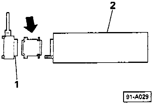 ^ insert test connector US 30844 (arrow) in line between power cord (25-pin connector) 1 and transceiver 2