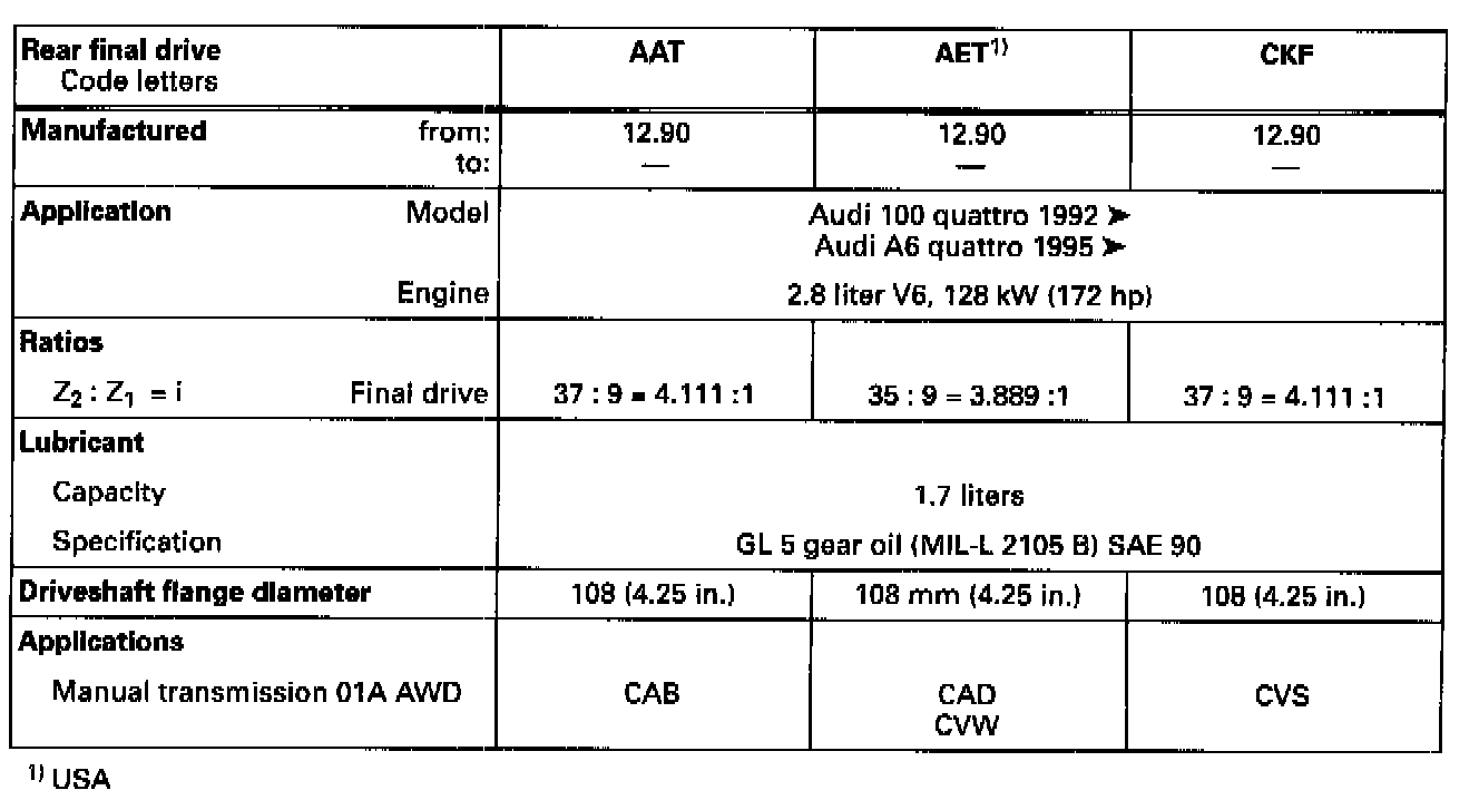 Code Letters, Engine/Transmission Applications, Ratios, Capacities: