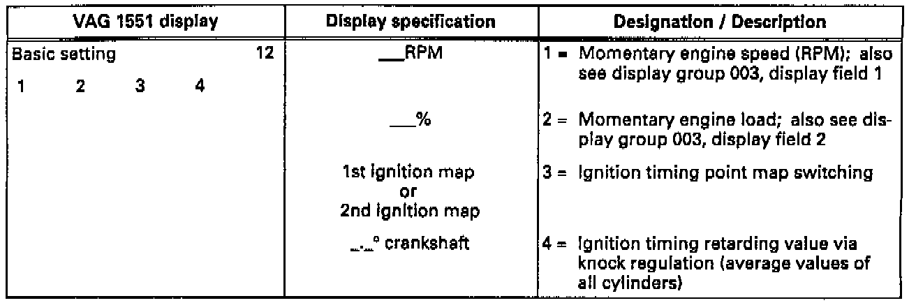 ^ If ignition timing map 2 is selected see display groups 013 and/or 014 for a more precise evaluation.