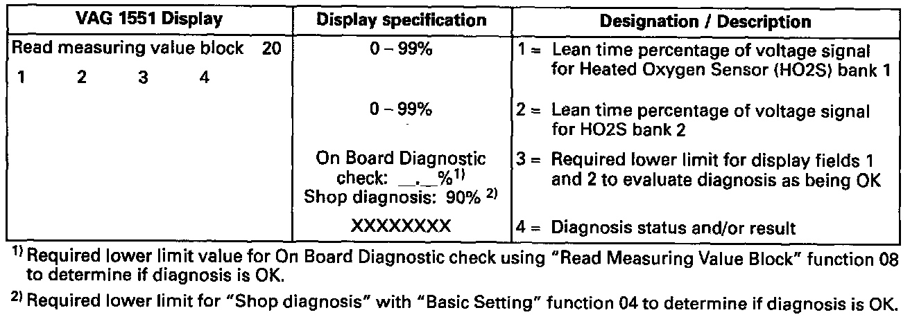 Key to VAG 1551 Display, Measuring Value Block 20