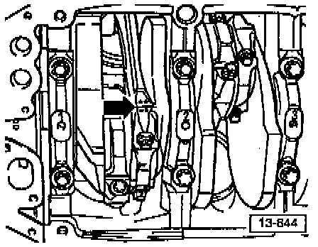 1. Mark connecting rod bearing caps with light punch marks (arrow) before removing.