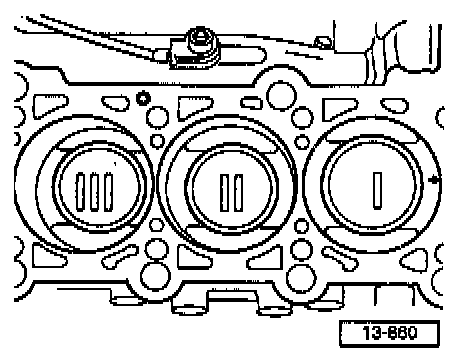 NOTE: Before removing the pistons, mark their installation positions clearly on the piston crowns (as shown in illustration) using a waterproof felt-tipped pen.
