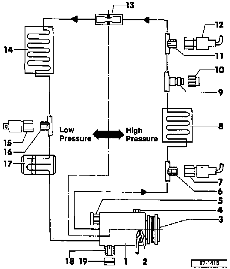 - Switches A/C clutch -N25- OFF if system suction pressure is too low (low refrigerant charge).