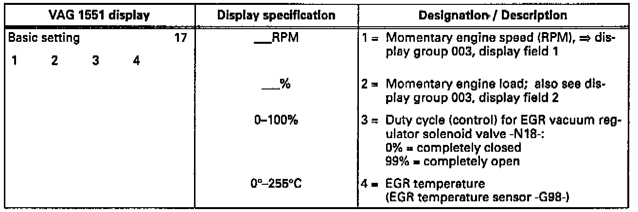 ^ The EGR system can be checked by comparing display field 4 in idle (EGR system blocked/ambient temperature display) and at increased engine speed (EGR system active/EGR temperature display).