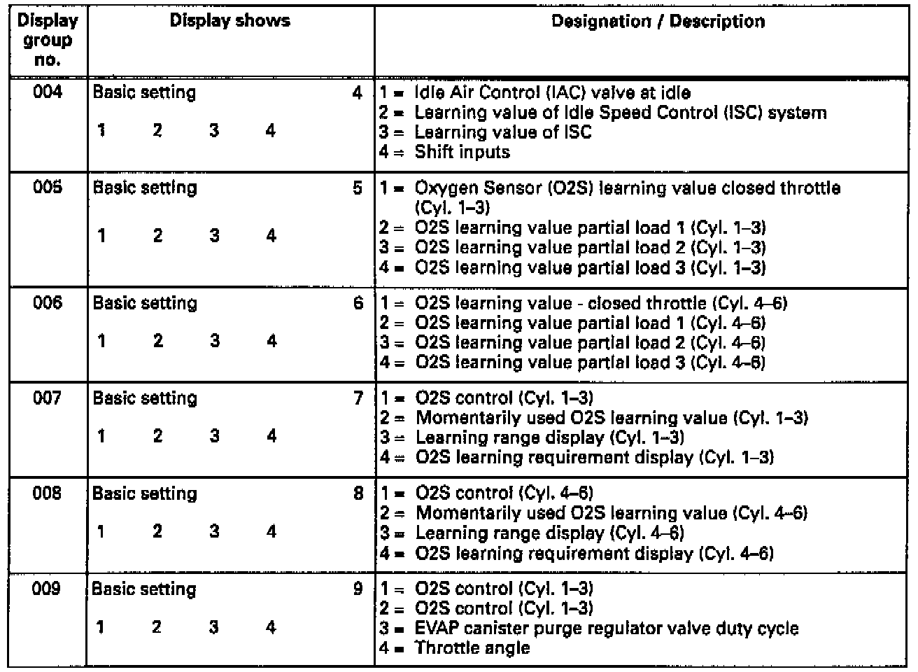 Display Groups For Basic Setting & Measuring Block Value