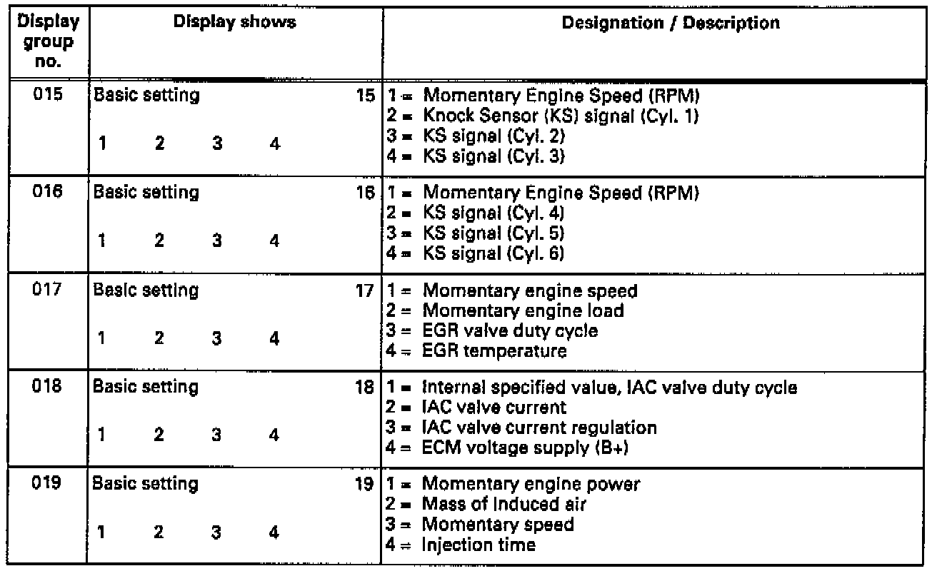 Display Groups For Basic Setting & Measuring Block Value
