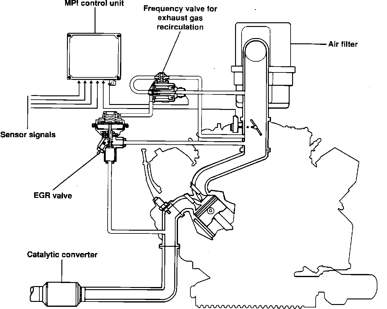 The EGR temperature sensor is used to inform the MPI control module that the EGR valve is functioning. The sensor monitors the temperature of gases exiting the EGR valve. The EGR temperature sensor is for fault recognition only.