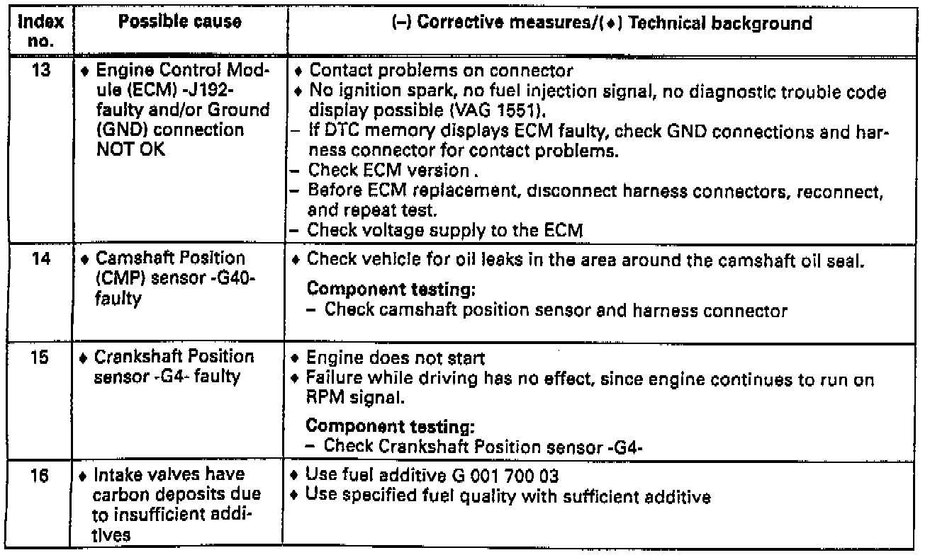 Diagnostic Chart, Possible Causes 13, 14, 15, & 16: