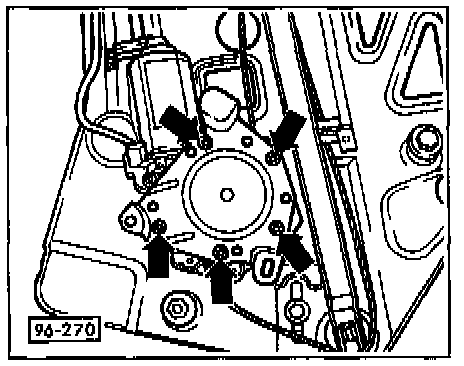 - Mark position of window regulator motor in slots at mounting points.
