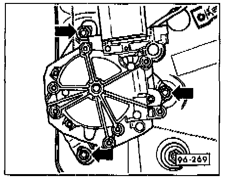 - Remove mounting nuts (arrows).