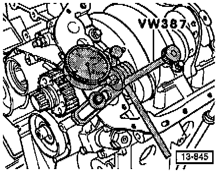 1. Install a suitable dial indicator with holder tool No. VW 387, or equivalent, on oil pump and set indicator against crankshaft counterweight.