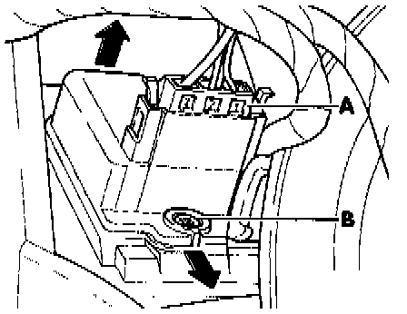 - Slide control module from mount (lower arrow) and lift out (upper arrow).