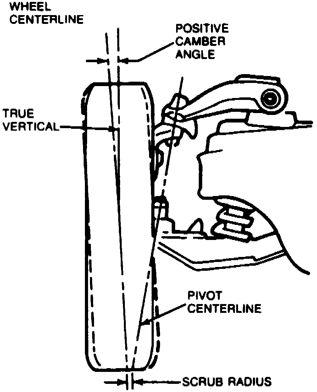 Camber is the amount of center line that the wheel is tilted inward or outward from true vertical, Fig. 1. If a wheel tilts outward, camber angle is positive. If the top of a wheel tilts inward, camber angle is negative.