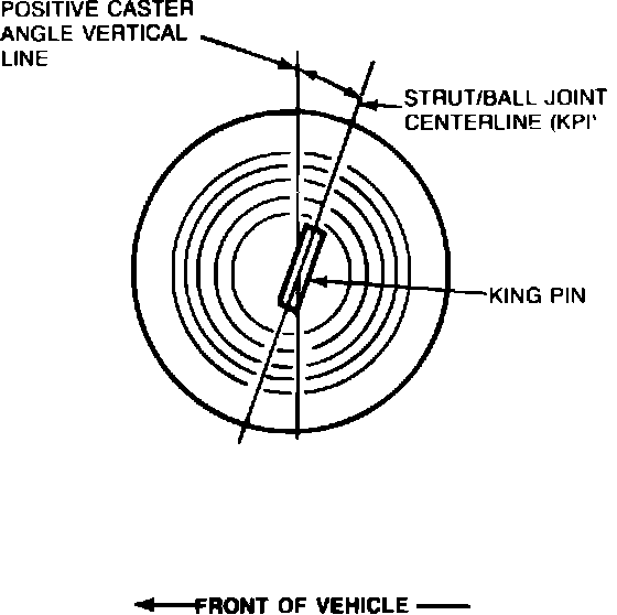 Caster is the forward or rearward tilt of the top of the front wheel spindle, Fig. 2. If the top of the spindle tilts to the rear, caster is positive. If the top of the spindle tilts to the front, caster is negative.