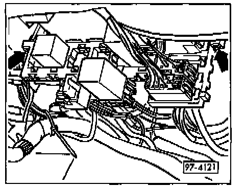 - Remove screws (arrows) and pull auxiliary relay panel downward.