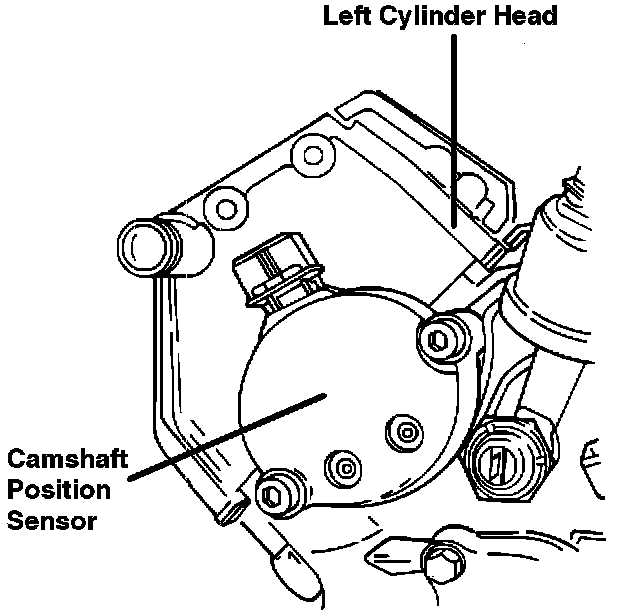 The Camshaft Position Sensor is located behind the left cylinder head on the end of the camshaft.