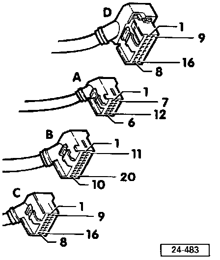 - Connect VAG 1598 test box to ECM using adapter cable VAG 1598/11. Refer to VAG 1598 Pin Out Box Connecting.