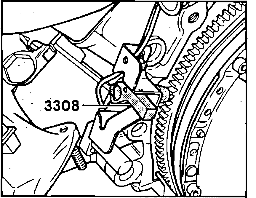 7. Insert bracket adjusting tool #3308 in place of Engine Speed Sensor.